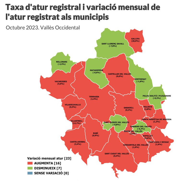En l’àmbit comarcal, la tendència també ha estat a l’alça. L’atur només ha disminuït en 7 municipis i, per contra, ha augmentat en un total de 16. Aquest mes de novembre ha començat amb 376 aturats més que el mes passat, el que situa la xifra de persones sense feina a la comarca en 45.001. A Catalunya, la tendència es repeteix. Actualment, l’atur a Catalunya se situa en 339.693 persones, amb 4.261 persones aturades menys que el passat mes d’octubre.